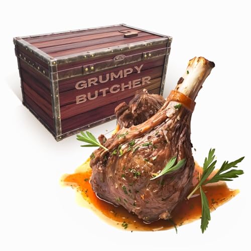 Grumpy Butcher Big Braised Lamb Shanks, 2 Packs (each 22-24 oz) – Delicius French Recipe Lamb Cooked With Basil, Thyme & Mustard – With Grumpy Butcher Gift Packages Specials Option