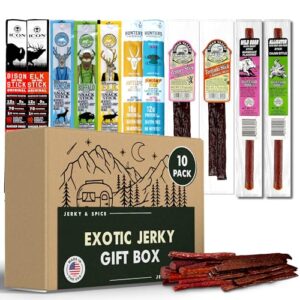 Exotic Jerky Beef Stick Gift Box (10 Pack), Beef Jerky Variety Pack, Jerky Sampler Gift Set, Snack Gift Box for Adults, Exotic Jerky Gift Basket for Christmas and Birthday, Meat Bouquet Healthy Snacks